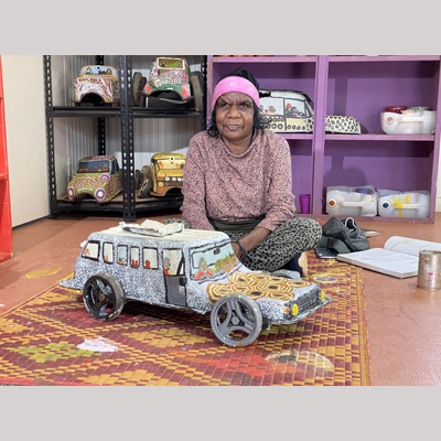 | Born in Amata on the APY lands of South Australia, Diane belongs to the Pitantjatjara language and culture group and comes from a family of well known Irrunytju artists. Her mother, Alkawari Dawson painted Kalaya Wati Tjukurpa (Emu Man creation story) which relates to the country of her birth and her father, Nyakul Dawson was a highly regarded cultural man, artist and ngangkari (traditional healer). Diane is a passionate and versatile artist who explores a variety of styles including traditional tjukurpa (ancestral creation stories) passed down by her parents. Diane has recently been exploring landscapes in her own contemporary style, capturing the country around Irruntju community through acrylic, watercolour and sculpture. |